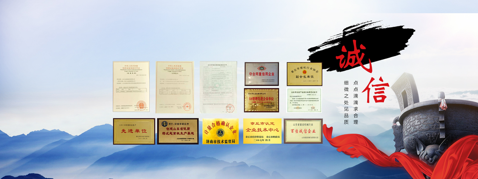 山東機械科技有限公司大成是國家質監(jiān)總局認定的塔式起重機專業(yè)制造企業(yè),位于山東省章丘區(qū)。公司自創(chuàng)業(yè)之初就作為輕騎集團之優(yōu)秀合作伙伴,不斷發(fā)展壯大。時至今日,大成機械已形成以建筑機械、羅茨鼓風機、車輛配件、機械加工、國際貿易為一體的全方位發(fā)展集團企業(yè)。公司所有產品已通過ISO9001國際質量體系認證。 塔式起重機作為公司的主導產業(yè),公司率先與北京建筑機械綜合研究所、山東富友公司合作,先后成功開發(fā)出具有國內同行業(yè)領先技術水平的QTZ系列自升式塔式起重機、井道電梯、塔吊、施工升降機。持有國家質監(jiān)總局頒發(fā)的A級《特種設備制造許可證》。